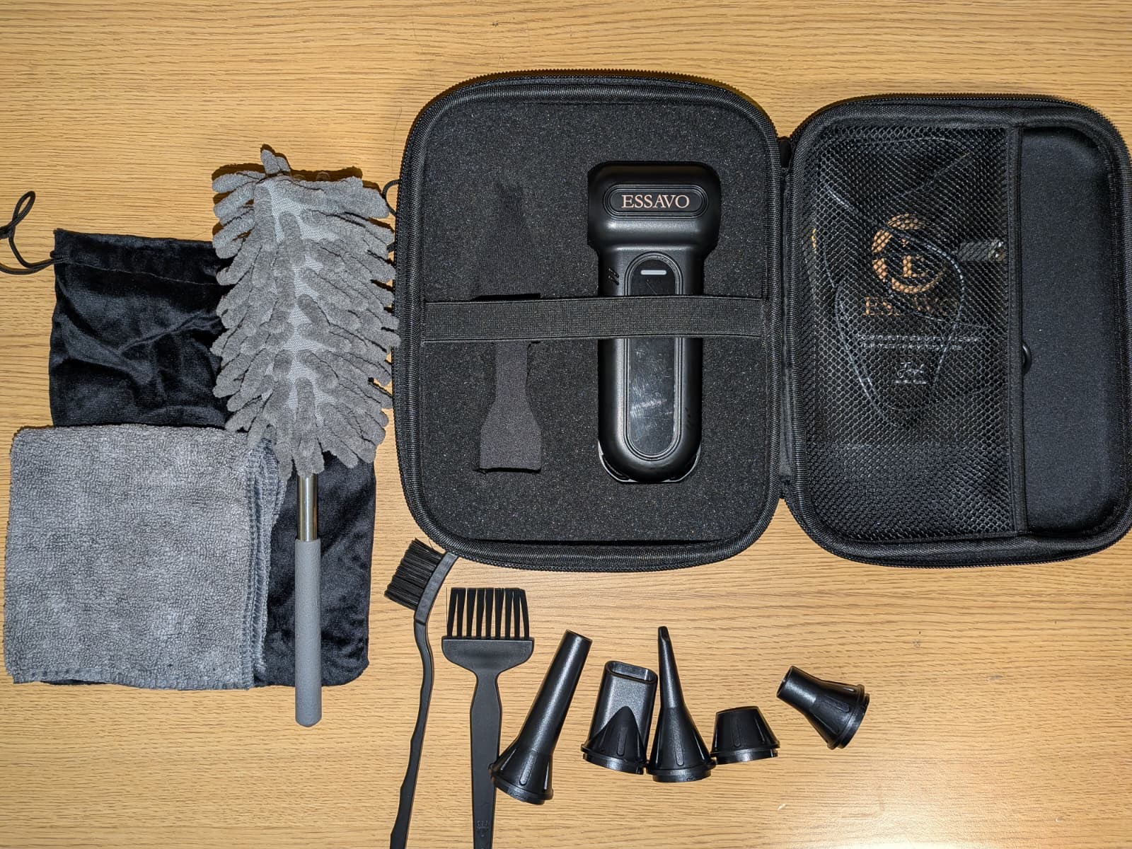 Protective Case & Organized Storage: Includes a hard travel case for the duster and its nozzles and a dedicated accessory bag to keep the microfiber cloth and other tools organized, so your gear stays protected and organized.